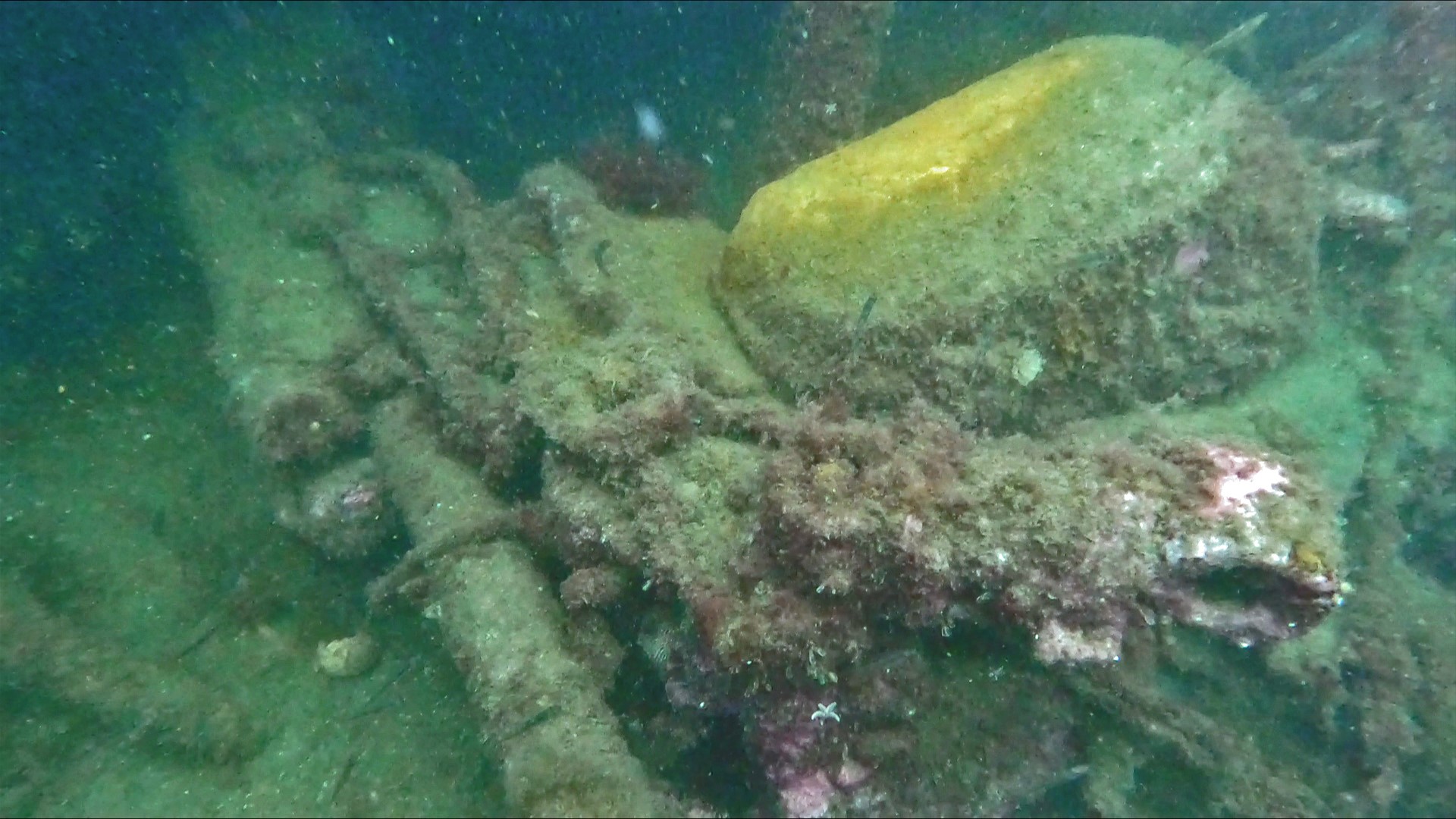 Dive 2 on the F2 Escort vessel and YC21 salvage barge took place in the afternoon in 17m of water. The sunken barge was being used to salvage parts of the Escort vessel and contains a couple of anti-aircraft guns in its hold.   The two vessels in shallow water were covered in Marine life and hosted a large number of fish.