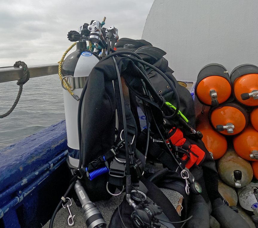 Multiple deep dives made deco stops inevitable but water temperatures made these comfortable and tidal currents were only slight.   Most were diving with twin sets but a couple with single 15L and ponies.